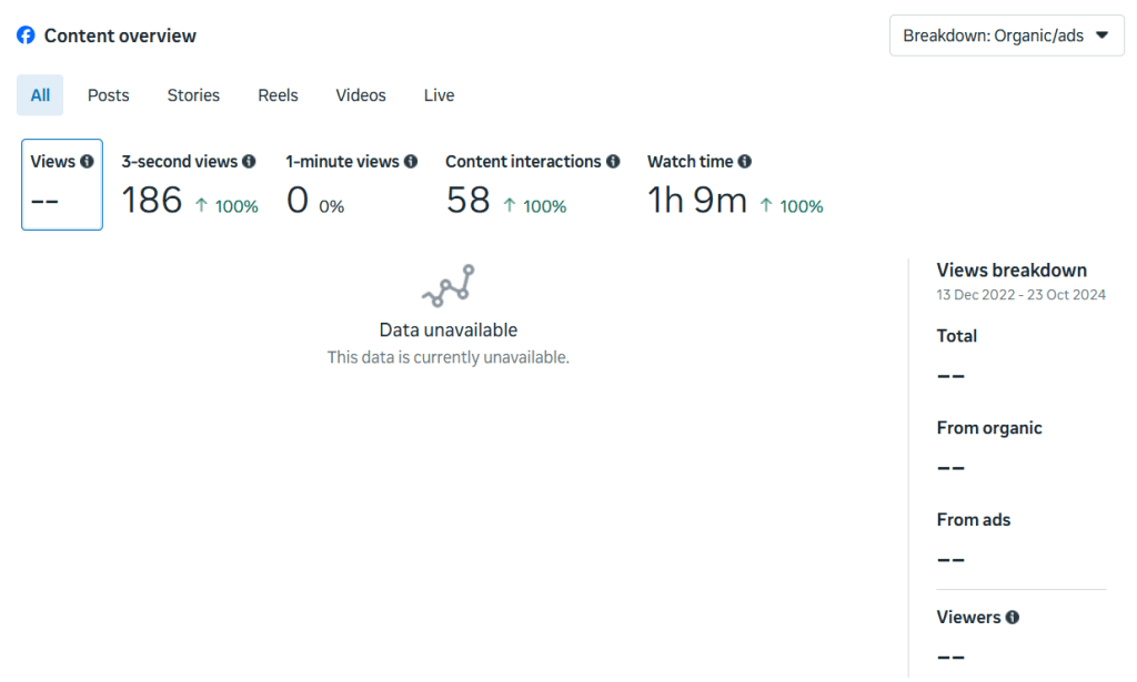 Meta Business Suite insights from 13 December 2022 to 23 October 2024 showed: