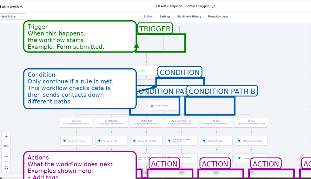 Understanding triggers and actions is the key to a more efficient business. Whether you’re managing property in the Waikato or optimizing lead capture for a premium builder, we can help you assemble these building blocks into a system that works for you.