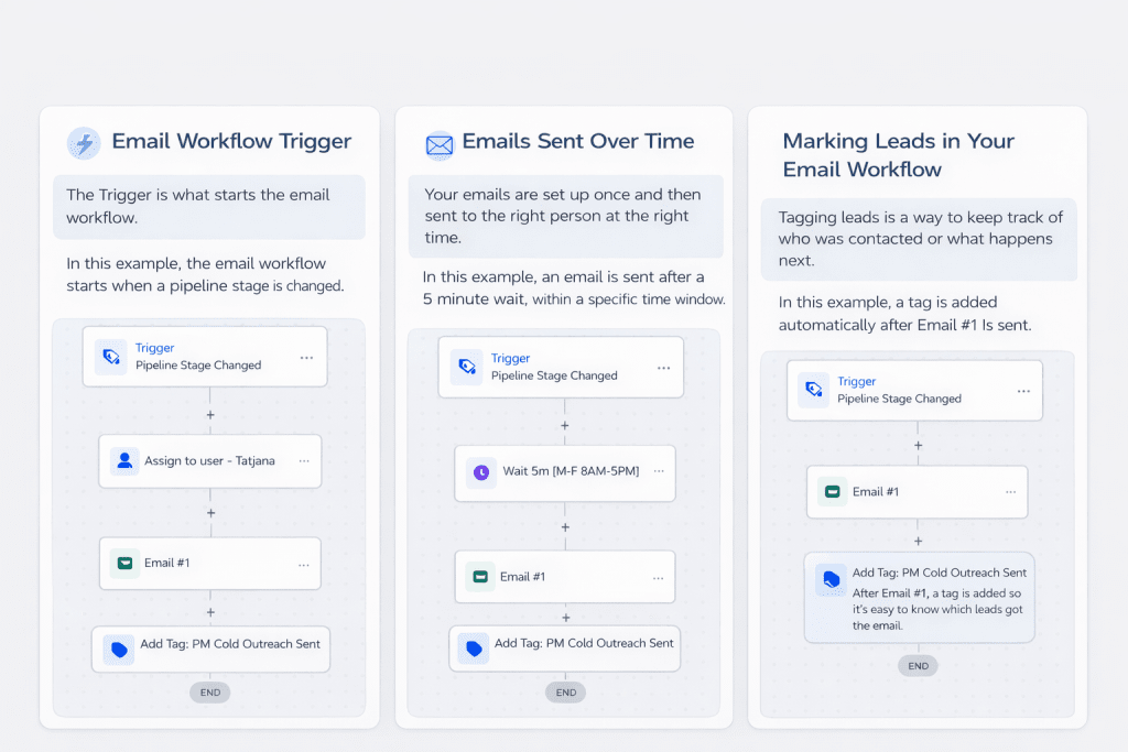 This is an email workflow. One setup. Multiple touchpoints. No manual sending.