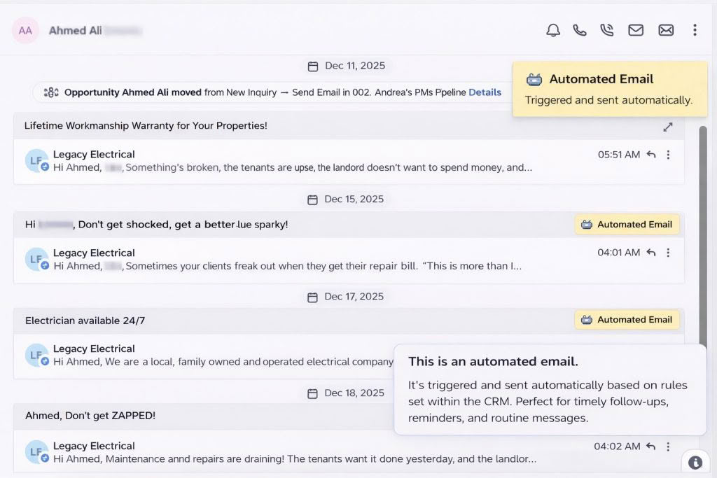 You set it up once, and the system sends the email at the right time, without you needing to manually step in.