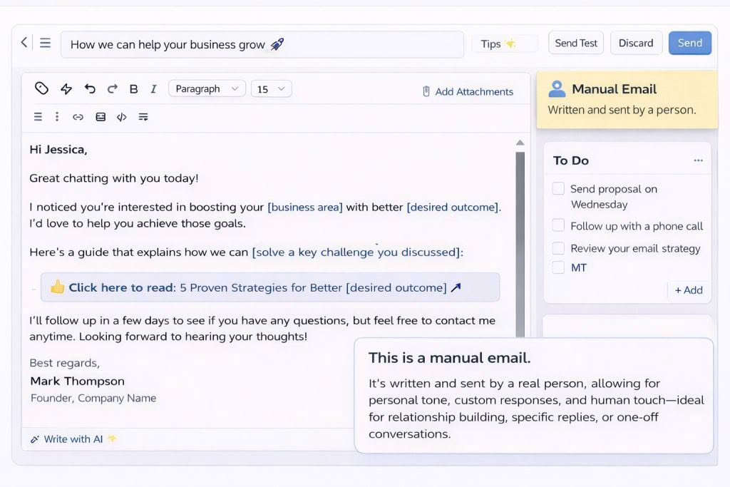 To understand how this fits with your personal outreach, see our guide on when to use email automation vs. manual emails.